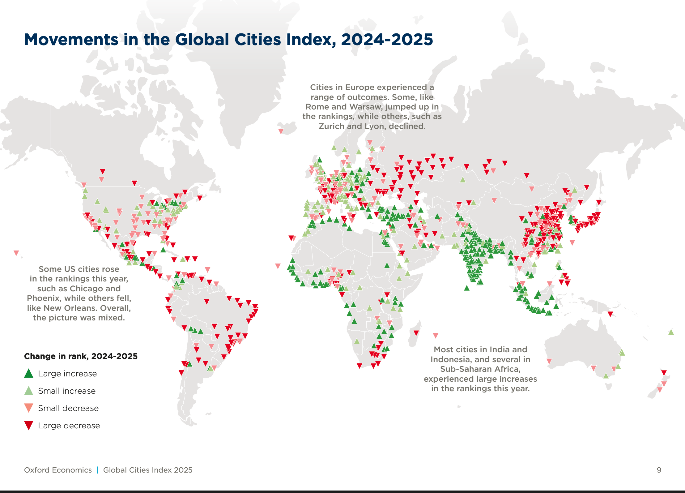 Cities across the developing world are set to be among the fastest-growing urban economies in the next quarter century, according to Oxford Economics’ Global Cities Index 2025. The report tracks the structural strengths and weaknesses of the world’s 1,000 largest cities, measuring economics, human capital, quality of life, environment and governance.