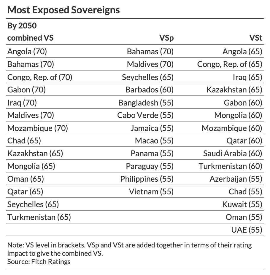 Fitch Ratings warns that global sovereign credit ratings will get downgraded by several notches in the coming years as climate change damage balloons and transition from fossil fuels weighs on the most exposed countries.