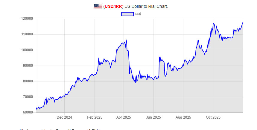 The US dollar surged more than IRR 1.2mn on the open market, trading as high as IRR 1,206,000, while the UAE dirham crossed the IRR 330,000 mark for the first time. The euro and the British pound also gained sharply, climbing by nearly 2% in one day.