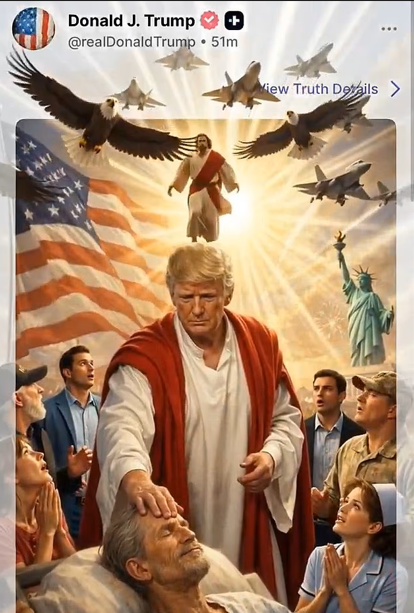 The AI image seen as depicting Trump as Jesus that angered many Christians, including many among the US president's base support (Credit: X/@IRANinTJ).