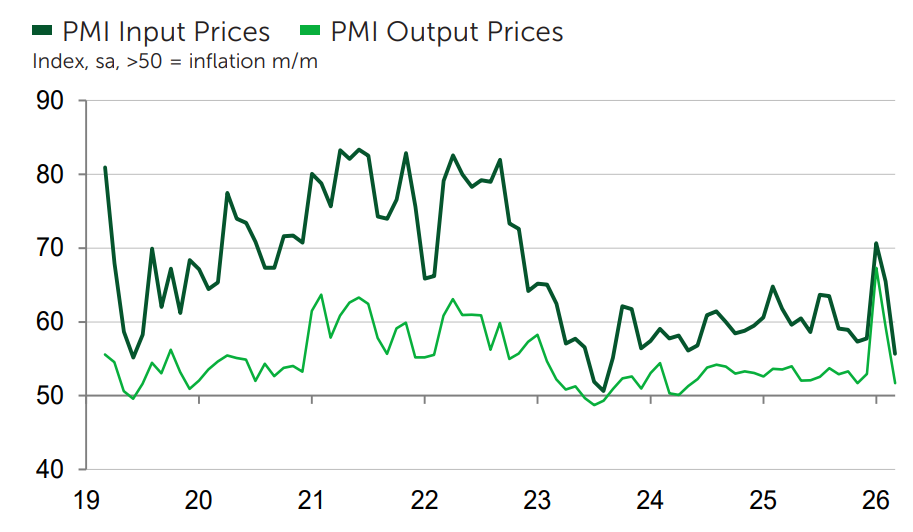 PMI data also showed that suppliers' delivery times lengthened for the second consecutive month amid poor weather conditions and disruption caused by the wars in Ukraine and the Middle East.