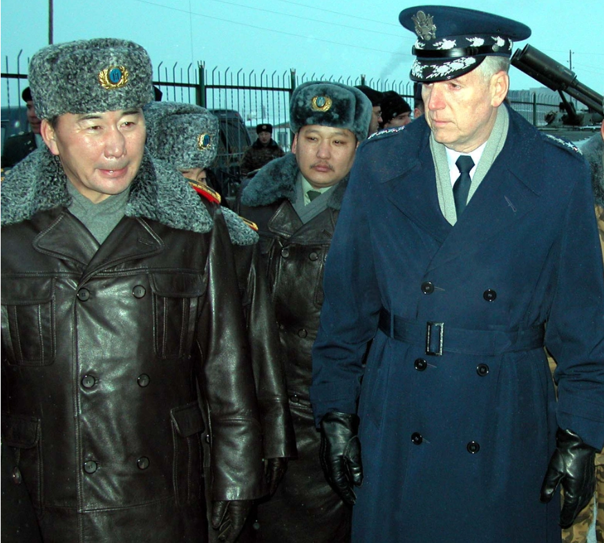In 2003, Mongolia committed troops to the US-led forces that fought the Iraq War. Here, Maj. Gen. T. Togoo, then chief of the Mongolian Army General Staff, greets Air Force Gen. Richard B. Myers, chairman of the US Joint Chiefs of Staff, who visited Mongolia to relay Washington’s thanks (Credit: American Forces Press Service, public domain).