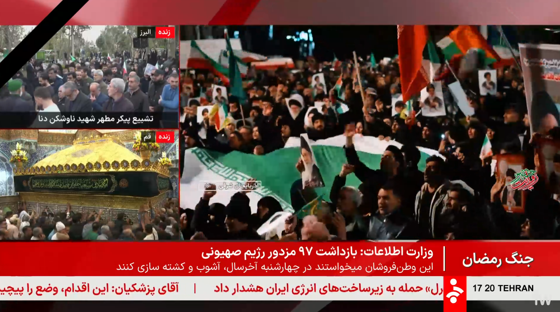 Television, which would usually be full of spring-themed programmes, is instead showing back-to-back nationalist programmes and non-stop patriotic music over videos of state funerals. Iran is still in the forty-days of mourning for the former Supreme Leader Ali Khamenei