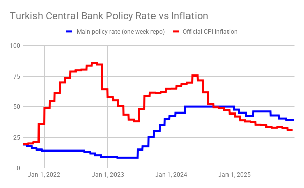 Chart: Turkey is set to fail to release an end-2025 figure at below the 30%-level.