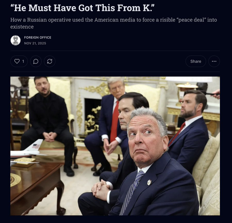 The source of the original leak that led to a story in Axios on November 19 has also become controversial. After the story broke, Witkoff seemed to suggest Dmitriev was the source of the leak. Reportedly in what was supposed to be a private message, Witkoff accidently posted on social media: “He must have got this from K,” in an apparent reference to Kirill Dmitriev.